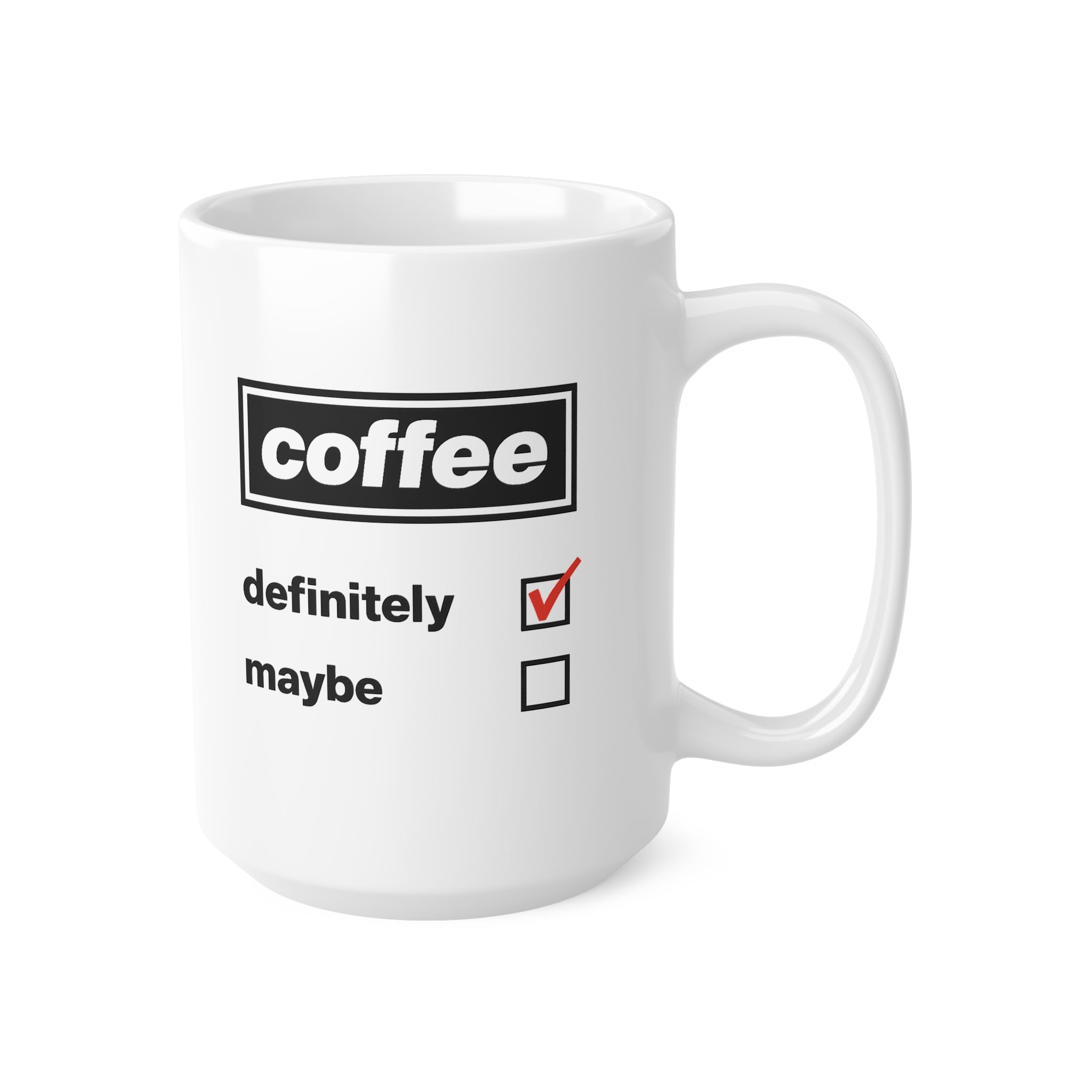 This Coffee Definitely Maybe Mug features a bold, minimalist checklist design inspired by iconic 90s Britpop album artwork in an Oasis like style. Simple, funny, and instantly recognisable, it’s perfect for anyone whose answer to coffee is always “definitely”.