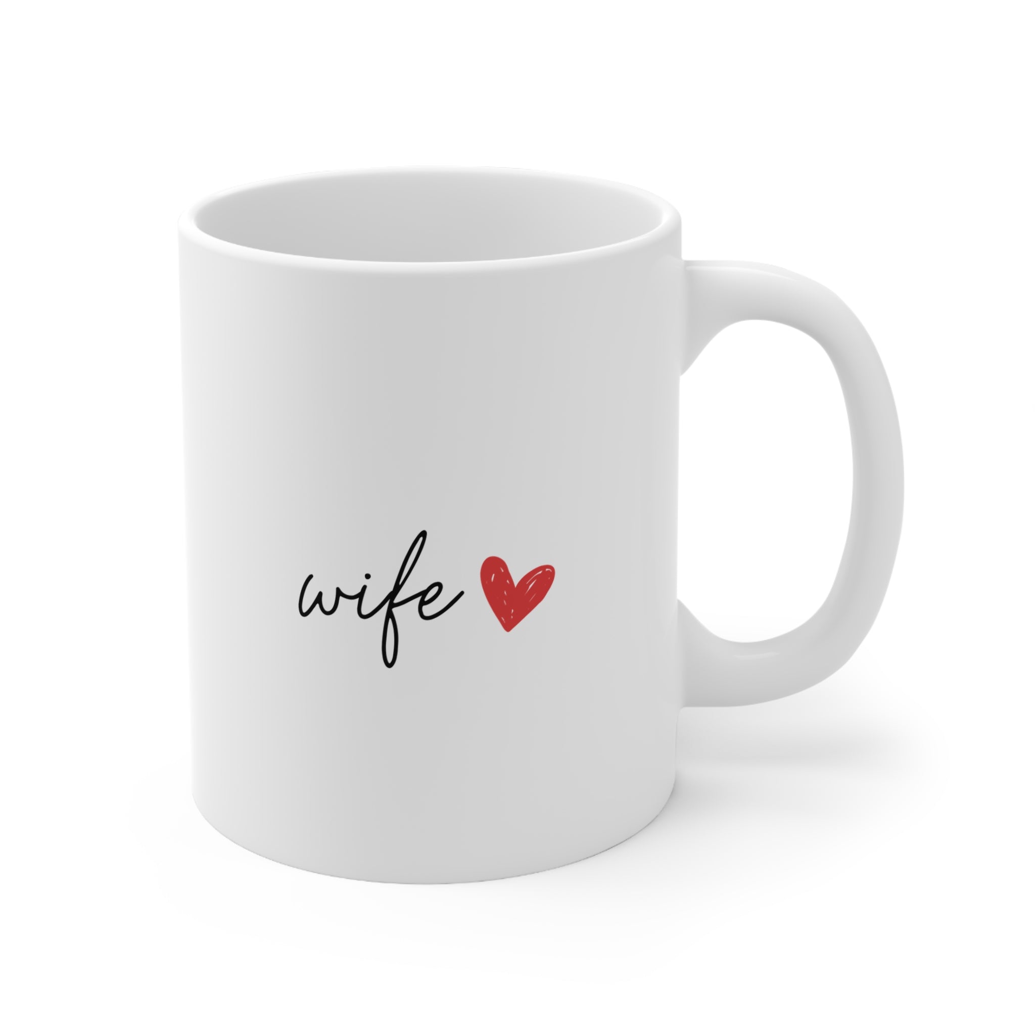 This minimalist “Wife” mug features soft script lettering with a small heart detail — a subtle but meaningful gift she’ll reach for every day.